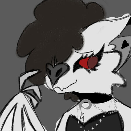 Likes: Goth rock, chocolate, her girlfriends, dyeing her fur, old gothic literature, Nosferatu, applying massive amounts of eyeliner every time she leaves the house (even if just for 10 mins to get groceries), The Scary Bitches, being in a car at night, dramatically collapsing into her bed in a flurry of floaty fabrics and sighing loudly like an overdramatic Disney princess, tits, flowy/drapey clothes, writing romantic poetry (which she sometimes gifts to her gfs)