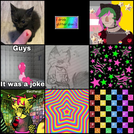 Likes: Wearing so many accessories that she's actually being weighed down, sugar, hyperpop, finding the stupidest shirts she possibly can online and wearing them out, Team Starkid, "your mum", rhythm games, MLP, dyeing her fur, her girlfriends, sci-fi, FNaF, using emoticons, musicals, purikura, being the mall rat they were born to be, AO3, DSaF