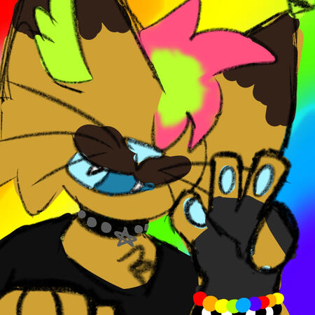 Likes: Wearing so many accessories that she's actually being weighed down, sugar, hyperpop, finding the stupidest shirts she possibly can online and wearing them out, Team Starkid, "your mum", rhythm games, MLP, dyeing her fur, her girlfriends, sci-fi, FNaF, using emoticons, musicals, purikura, being the mall rat they were born to be, AO3, DSaF